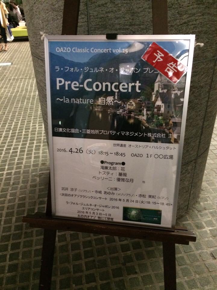 今年のエリアコンサート出演は5月4日。OAZOで午後7:30から。赤松さんとテノールの前川健生さんと3人で、その日のトリを務めさせていただきます。